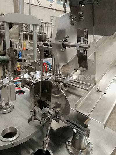 塑料復合軟管灌封機主要用于一次傳動原理。利用分度機構帶動裝有夾具的轉盤作間歇運動,完成自動灌裝及內外加熱、封尾、壓碼、切邊、成品退出等一系列功能。灌裝計量準確,加熱時間穩定、可調、封尾外觀漂亮、整齊、牢固、衛生。切邊平整。該機設為10個工位,除人工上管外,其它均可自動完成。整機運行平穩可靠,無噪音和其它污染。
