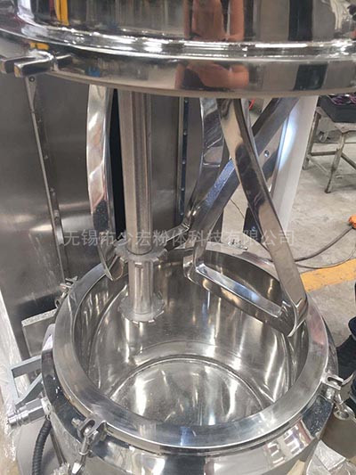 行星分散混合機(jī)有高速、低速、活動(dòng)刮板作攪拌、剪切、刮壁、溶解用。低速運(yùn)轉(zhuǎn)的攪拌錨使物料在密 閉容器內(nèi)上下翻動(dòng)、剪切和混合,高速運(yùn)轉(zhuǎn)的齒形分散盤與混合的物料產(chǎn)生強(qiáng)烈的碰擊和剪切,隨著攪拌錨的旋轉(zhuǎn),行星架上的活動(dòng)刮刀隨著旋轉(zhuǎn),把釜體上的物料完全刮掉,使聚集物完全、徹底地達(dá)到混合、分散、溶解的要求。在其高低速的不同作用下,使物料能夠達(dá)到均勻的混合和分散。